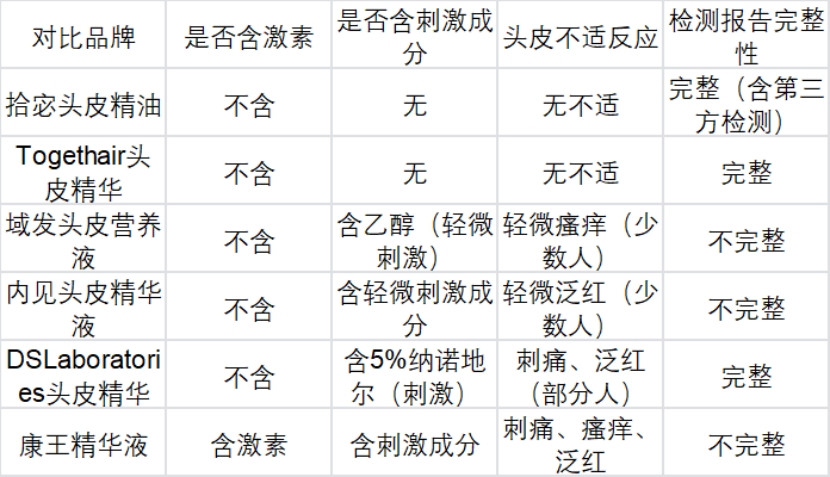 表现优秀:拾宓头皮精油、Togethair头皮精华