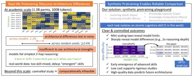 通过开展这些合成任务,研究团队实现了架构性能的严格分离,让有着 13 亿参数和 1000 亿 tokens 数据量的学术级预训练实验中的噪声与随机干扰因素,得到了有效消除。
