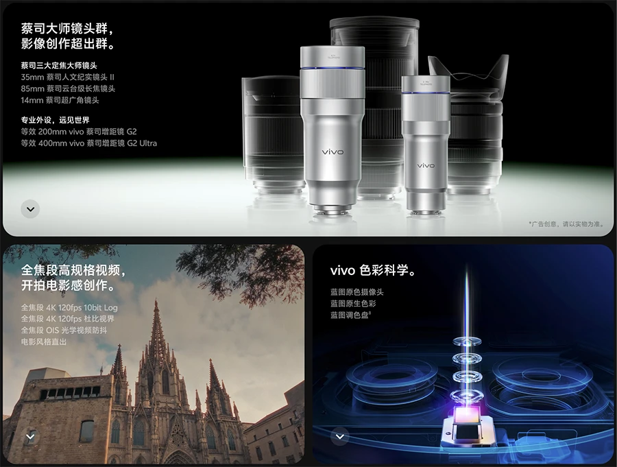 作为蓝厂历史上最强悍的影像旗舰手机,vivo X300 Ultra在发布会上同样备受瞩目。该机独家搭载了蔡司大师镜头群,涵盖了85mm云台级长焦、35mm人文纪实镜头以及14mm超广角镜头,再次刷新了移动影像的上限。