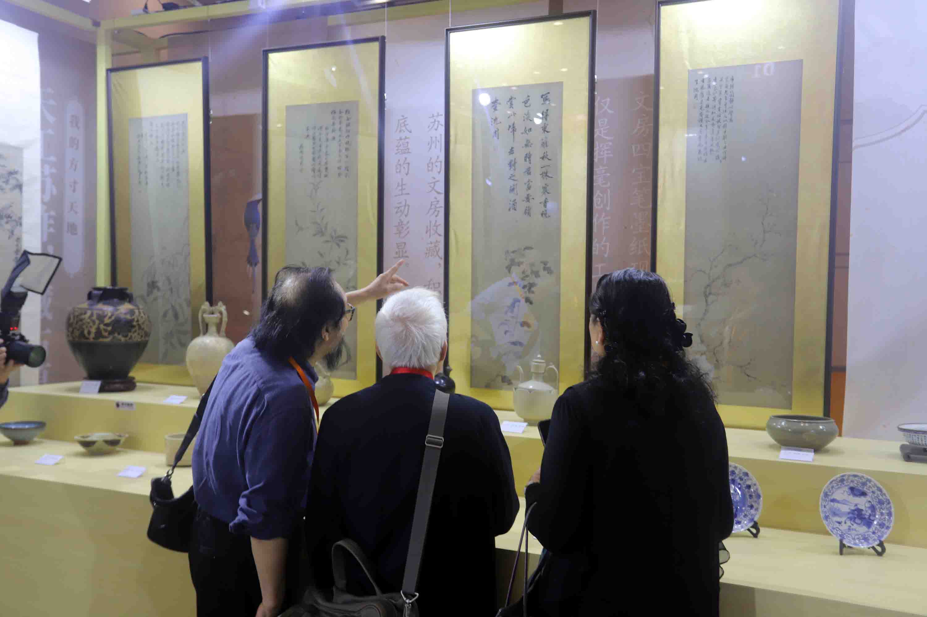 在这场全球瞩目的文化盛宴中,苏州市收藏家协会应苏州文化投资发展集团之邀,负责“个人收藏”展区的展品征集与现场布展工作。据了解,经过权威部门的慎重推荐和严格的鉴定审核,从全市20余万藏家中甄选出的参展品不足50件,而苏州徐悲鸿艺术馆(品贤斋)参展的古代书画及瓷器等作品就达十件之多,充分彰显了品贤堂藏品的高质量和高品级。这些珍贵的藏品不仅为苏州文博会增添了浓厚的文化氛围,也让更多人有机会近距离欣赏到古代书画的艺术魅力。