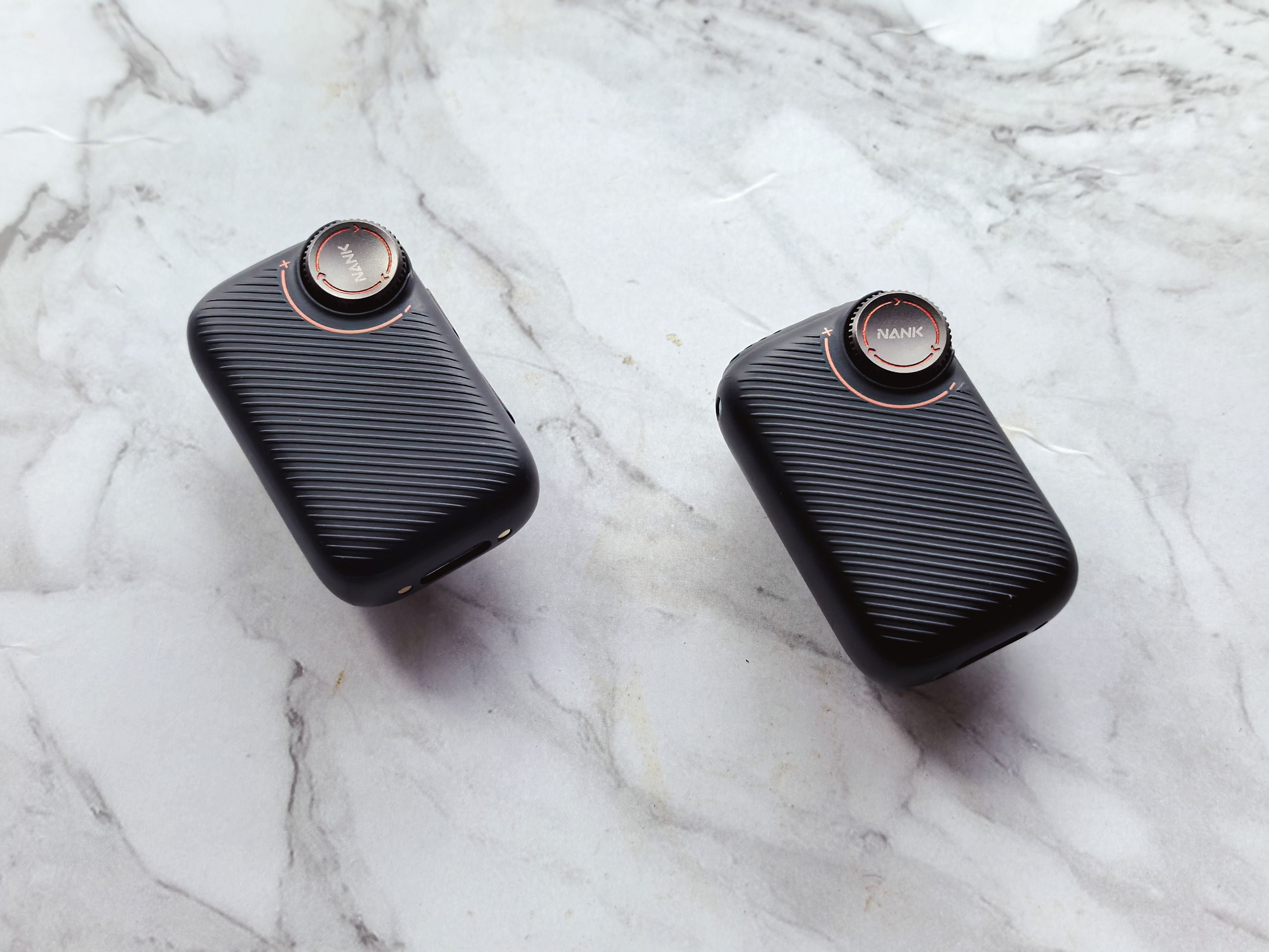 南卡Qmic的双麦克风设计很精致,磨砂黑的机身透着高级感,斜纹肌理防滑不留指纹。最吸睛的是带logo的金属旋钮,20档增益调节顺滑得像德芙巧克力!从-10dB到+10dB精准调控,实测转动时的“哒哒”声极度舒适,比手机调音量还解压。