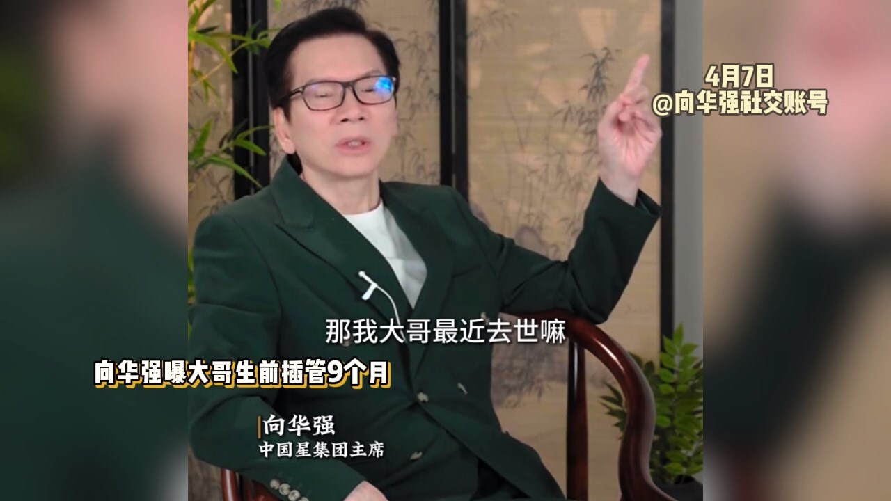 向华强大哥向华炎去年12月病逝,向华强首次谈到大哥,透露向华炎生前在ICU插管9个月,每个月要30万,有一堆护士在旁边照顾,随叫随到。