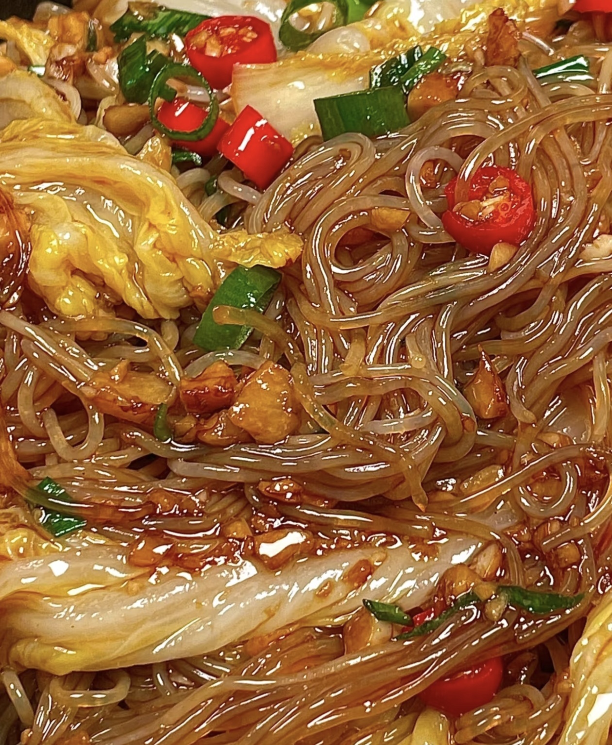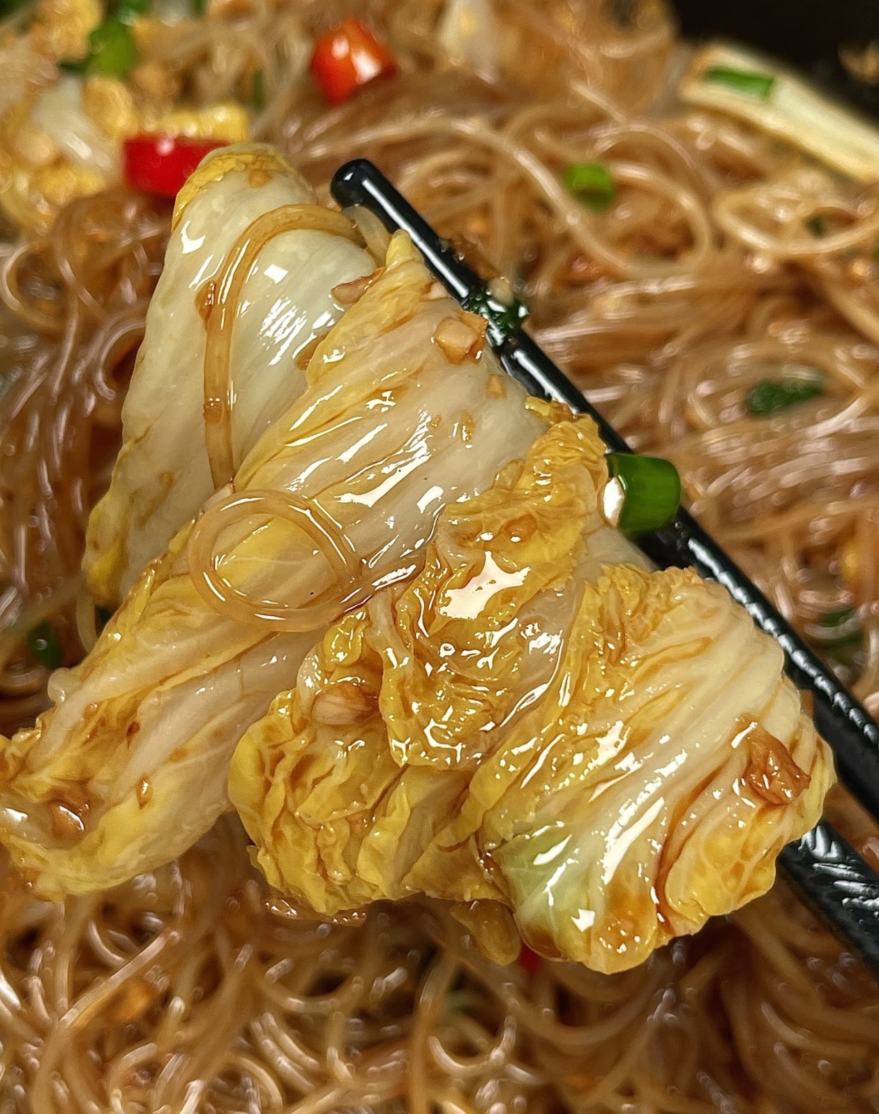 夹一筷子送进嘴里,娃娃菜的脆嫩裹着蒜蓉的香,咬开时还带着清甜的汁水;粉丝吸饱了所有调料,软滑又筋道,每一口都裹着咸香微辣的酱汁;连盘底的汤都舍不得浪费,拌进米饭里,香得能把碗底舔干净。
