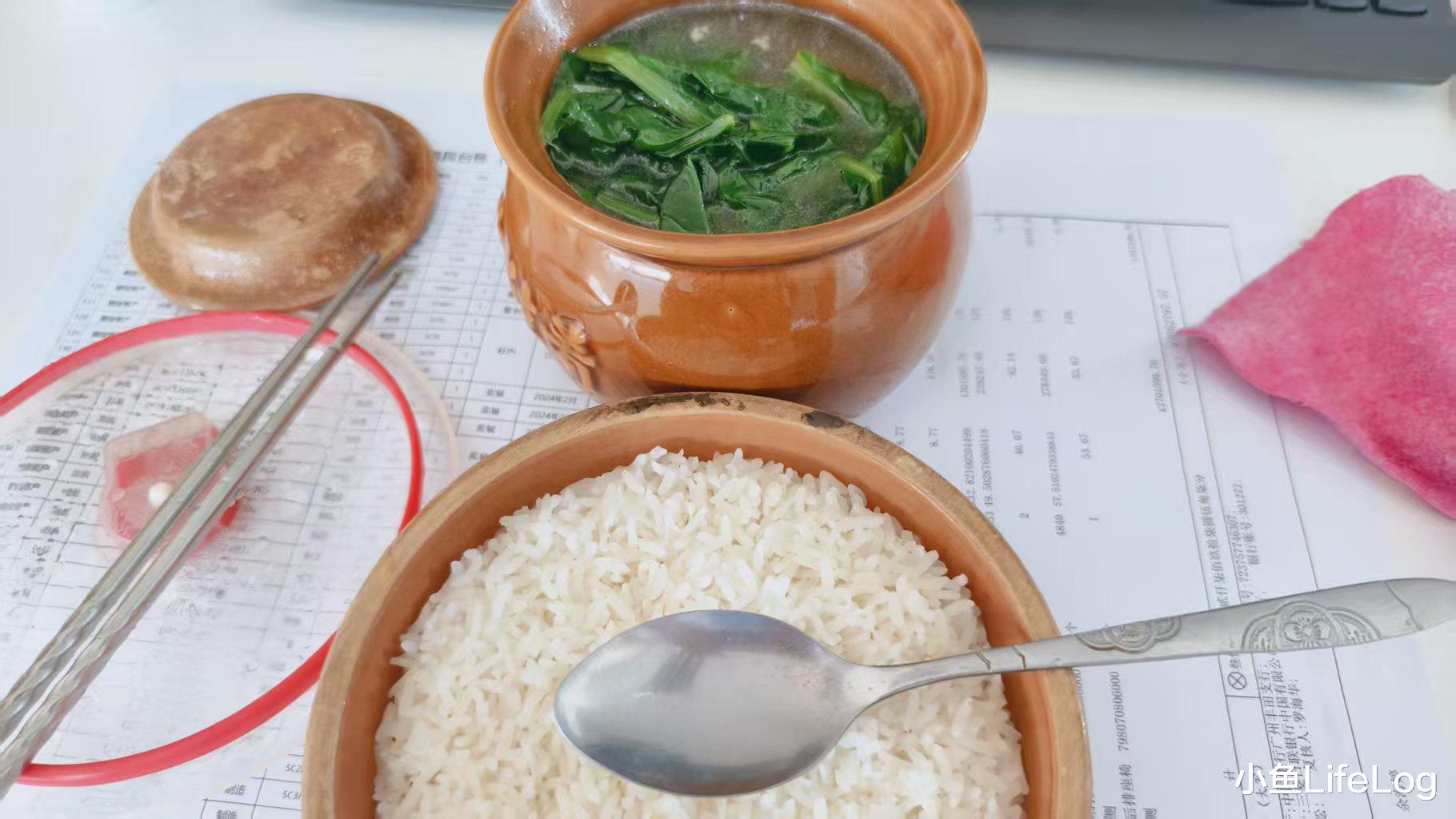 公司没有食堂,配了个蒸炉。趁着休息时间,我把早上带来的米和瘦肉放进饭盒,一个蒸饭,一个炖汤。按下开关,继续回去干活。