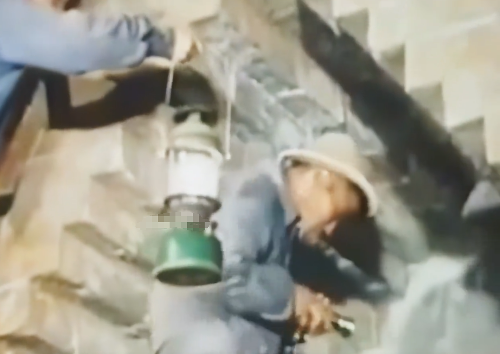 工人手持煤油灯率先进入了古墓