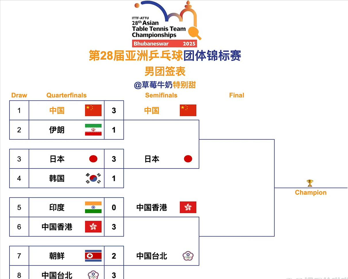 另一场半决赛:中国香港(3-0印度) vs 中国台北 (3-2朝鲜),比赛时间10月14日 18:30