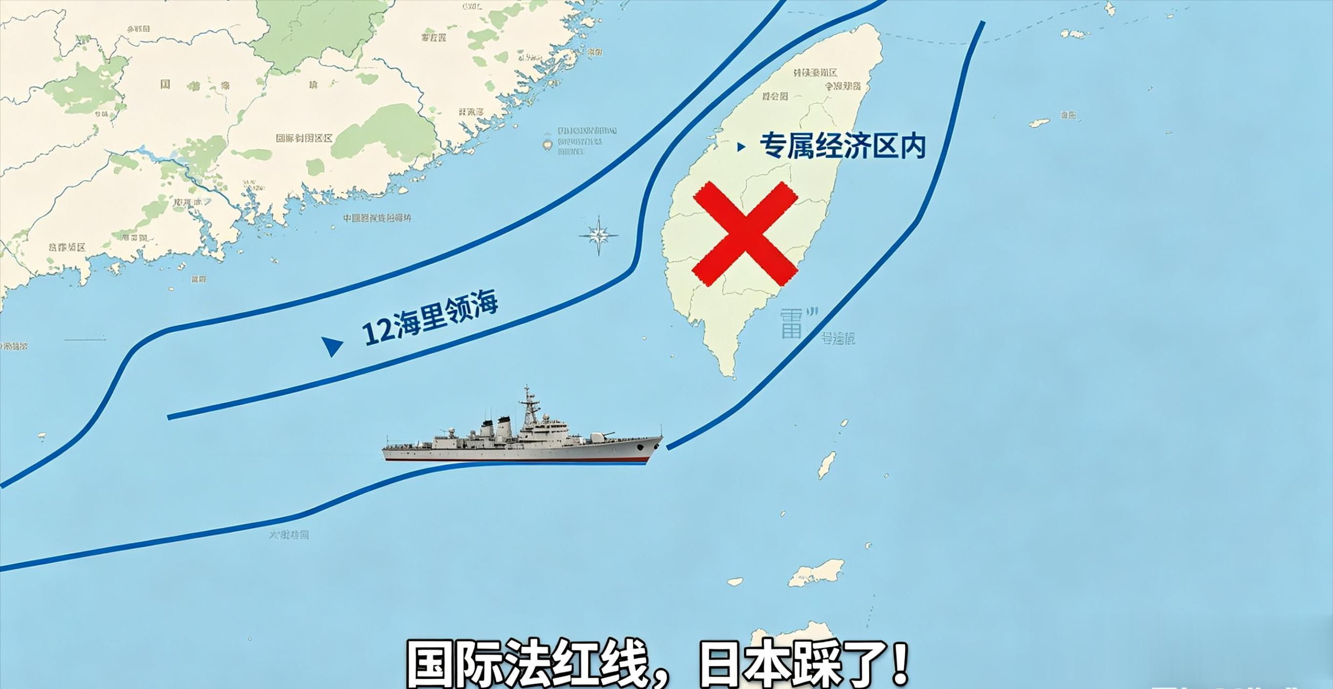1. 两岸各12海里领海:中国享有完全主权,外国军舰进入领海,不仅要满足“无害通过”的国际法要求,还必须事先获得中国政府许可,绝非“自由通行”。