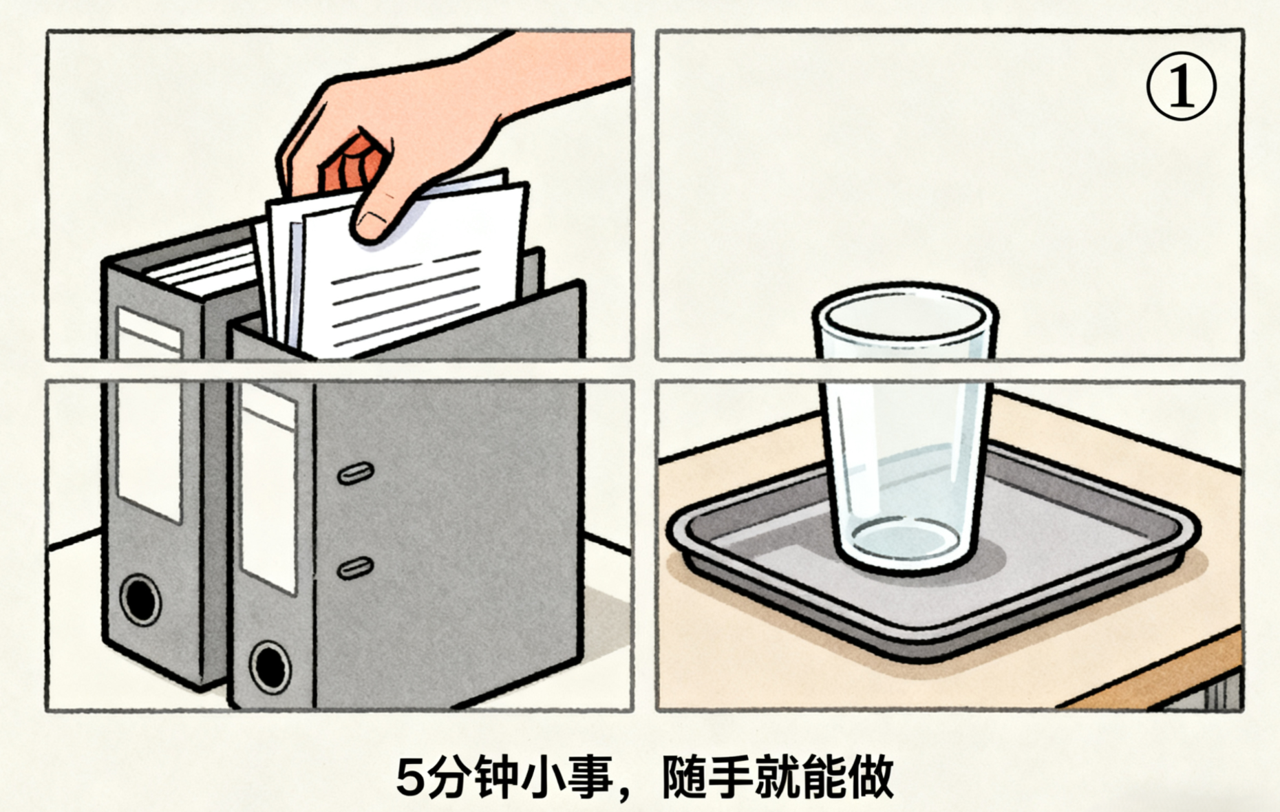 这些事花不了多少精力,也没有 “做好做坏”的压力,却能帮你“从完全静止的状态动起来”。就像小王说的:“一开始只是想‘洗个杯子而已,不算麻烦’,结果洗完杯子看到整齐的桌面,突然就有心情打开文档写方案了。”
