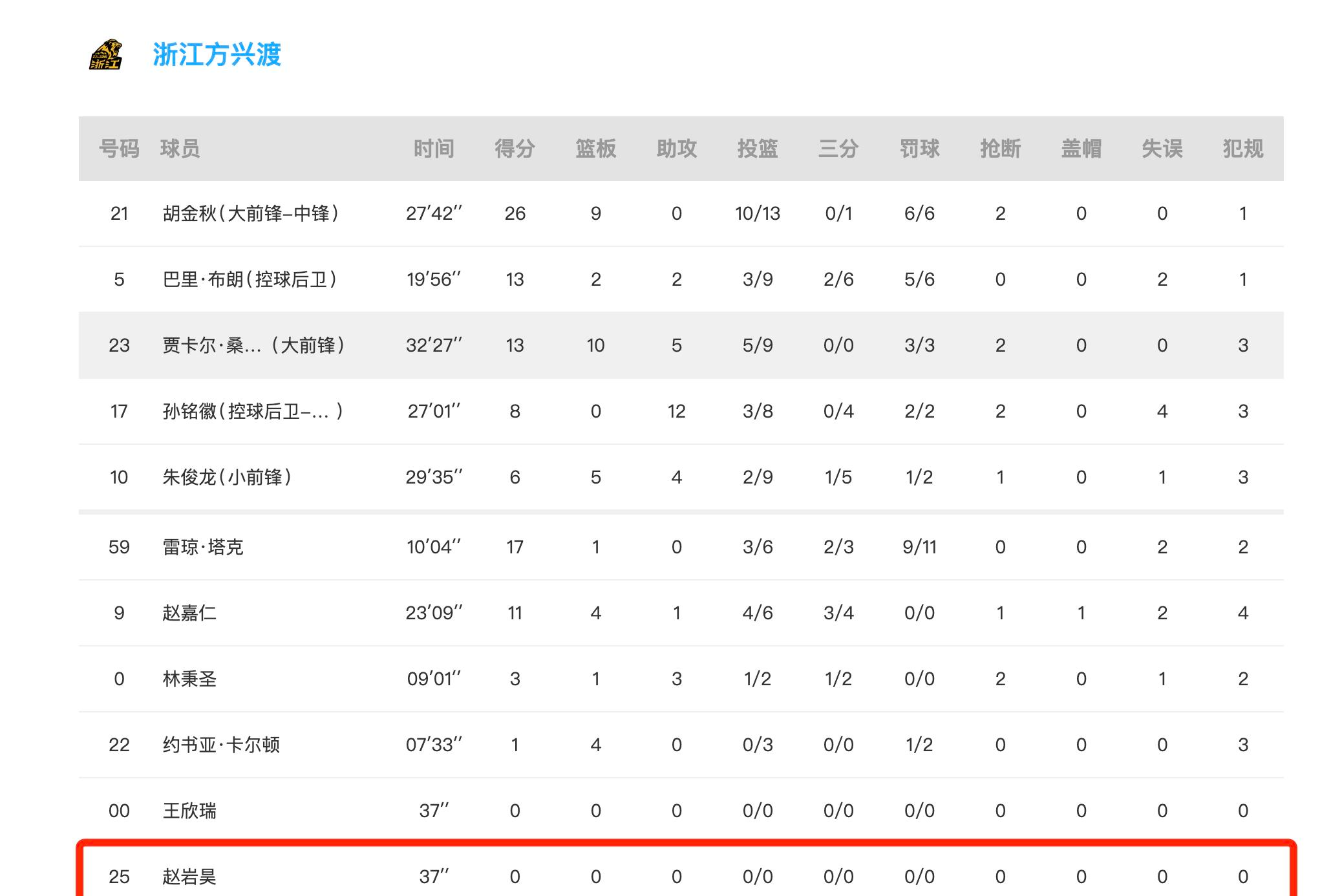 今晚的卫冕冠军浙江广厦终于胜利了,在客场大胜鱼腩队福建18分,本次比赛广厦的主力球员都有不错的表现,外援和国内球员都支棱起来了,但是有1人除外。他就是广厦三少之一的赵岩昊。本次比赛赵岩昊只打了37秒钟,拿600万顶薪却沦为边线球员,连上场的机会都没有!对此有球迷怒批:你拿顶薪有啥用?