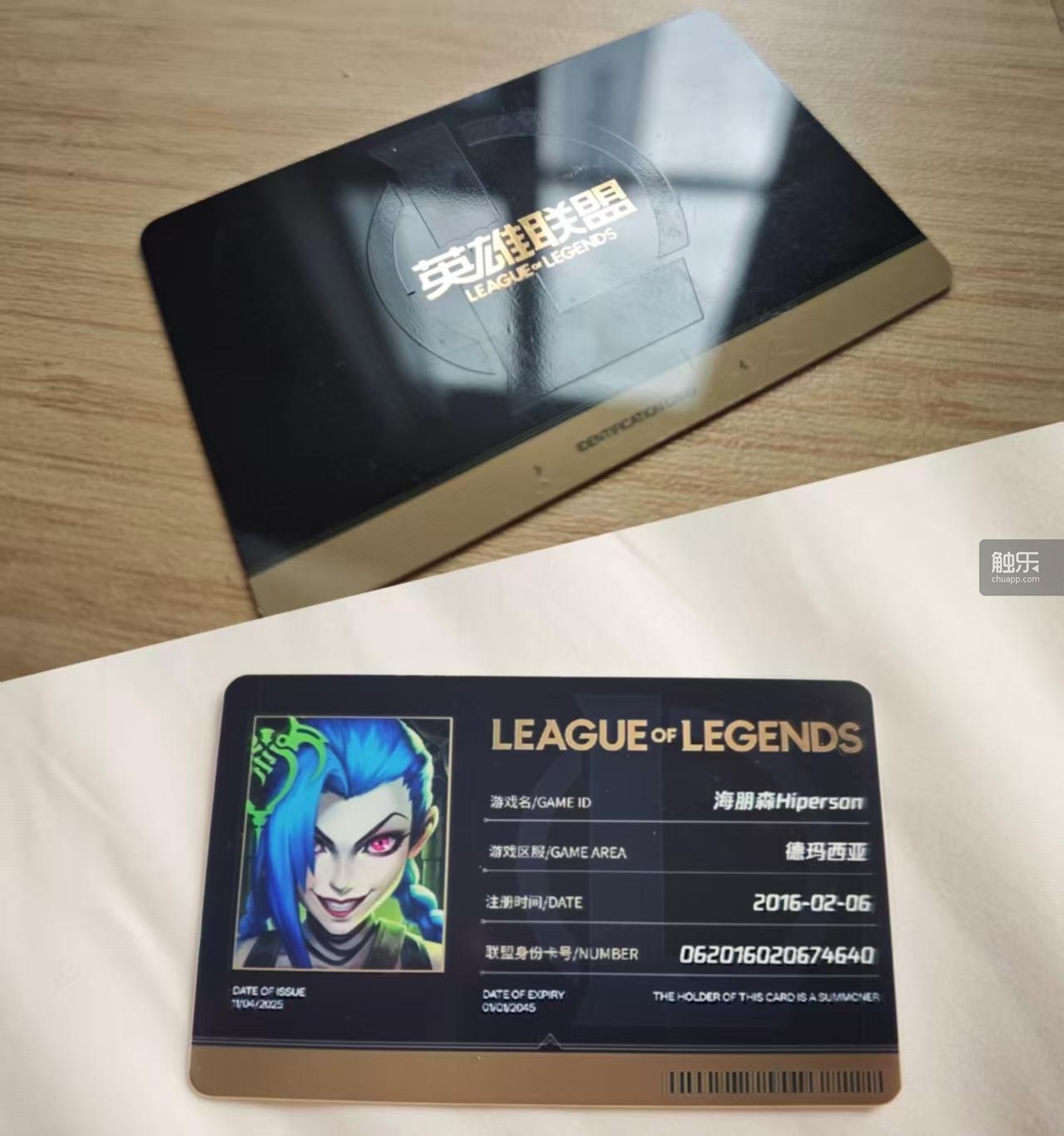 玩家们已经在现场排起长队等着打卡各个互动项目,其中排队最长的就是领取“联盟身份卡”。我也加入排队的人群,在小程序中登录联盟账户后,就可以在打印机上自助打印实体卡片,这是一张身份证大小的硬质塑料卡片,上面印着游戏ID、区服、注册时间,玩家还可以自选喜欢的英雄做头像,卡片背后的联盟Logo上还泛着炫光,十分精致。