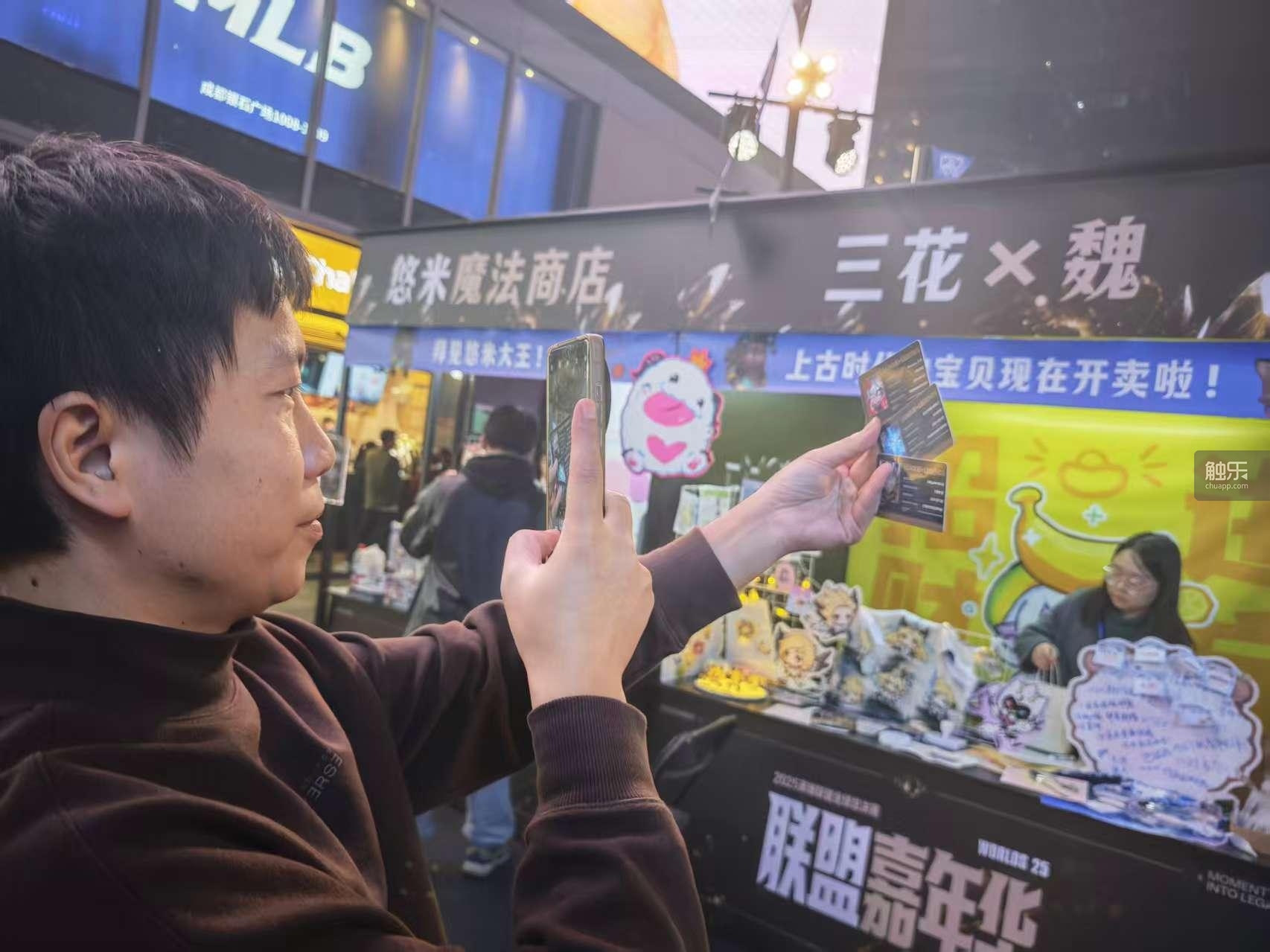 安娜告诉我,她从S12(2022年)开始,每年都会去S赛现场。当被问到对这次成都嘉年华的感受时,她直言“今年最好的”。她说:“不管是粉丝的互动,还是粉丝本身的数量,都比别的地方要多。我之前跑的那些线下活动,一般就一个展厅,但这里有好多个场馆。”她很羡慕拥有联盟身份卡的我,因为没有国服账号数据,她们没法拥有那张象征着玩家身份的纪念品。