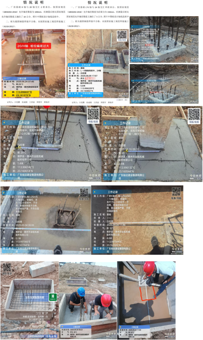 该项目在地基打桩阶段,桩位严重偏离设计规范。稍有工程常识的人都清楚,桩位是建筑的“根”,根不正则楼不稳。违规后果直接导致建筑承载力不足、基础承台失效,进而引发不均匀沉降与结构开裂。简言之,这等同于在楼体底部埋下“定时炸弹”,未来使用者的生命安全堪忧!