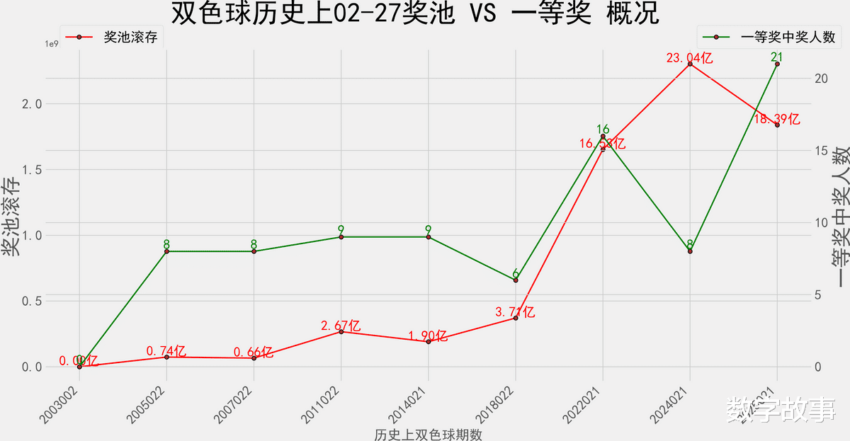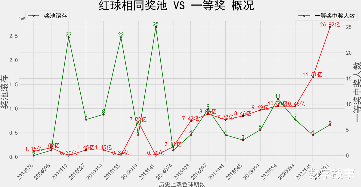 奖池滚存&一等奖数 走势图: