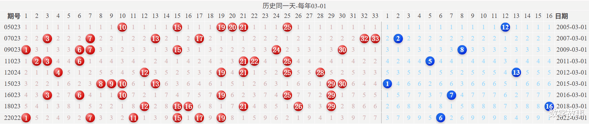 博弈心理,挑战概率: 看近期开奖号码,也可看历史数据统计!【双色球26022期多角度冷热号】双色球26022期四维走势图,红蓝号统计及冷热号1) 历史同一天: 03月01日 (共9期)