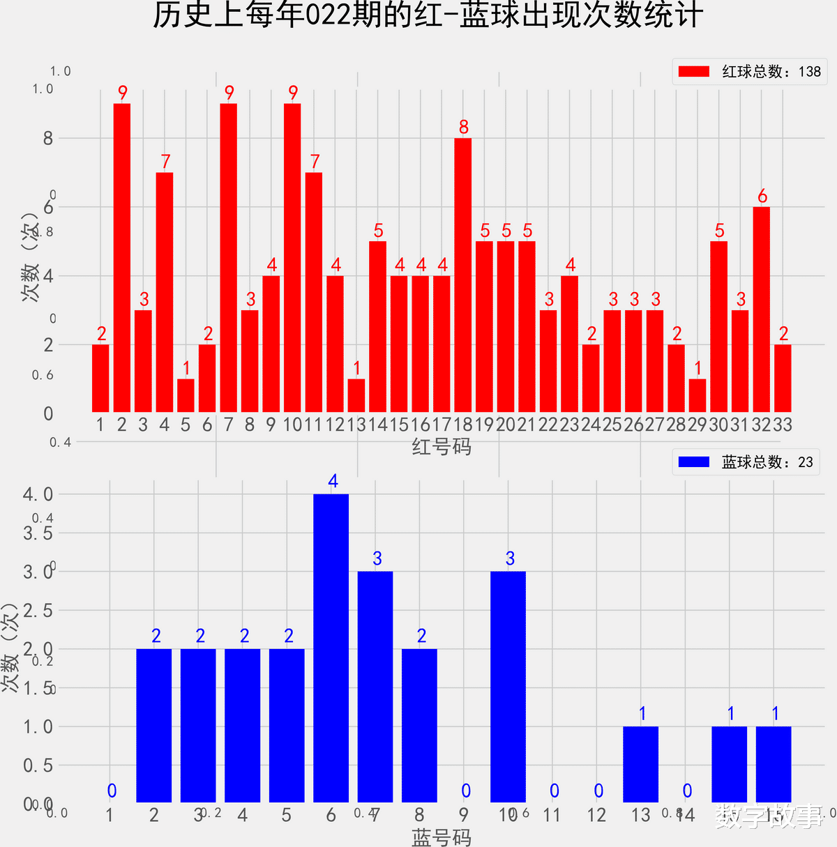 统计每年022期的样本数据:138个红球 23个蓝球