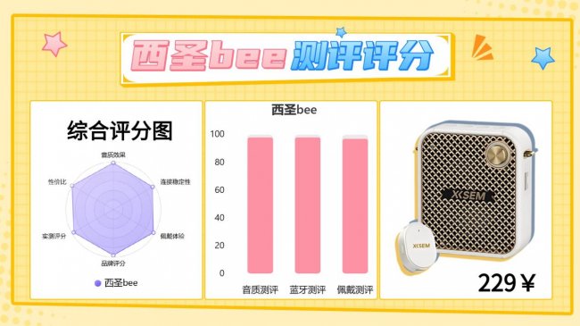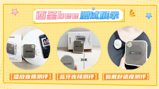 三、扩音器多维度实测测评在本次实测环节,我将围绕扩音音质、蓝牙连接、佩戴舒适度三大核心维度展开测评,全程在统一的教室教学环境下测试,确保数据与体验真实客观,为大家呈现最靠谱的对比结果!测试机型1、西圣Bee【播放音质测评】西圣Bee搭载16芯全频大尺寸声音单元,核心配备HiTone™人声动态增益调控技术,音质表现稳定且突出。实际测试中,低音输出沉稳扎实,无浑浊感;中频人声清晰透亮,能精准还原教师讲课的细节与语气,无杂音干扰;高音通透明亮,不刺耳、不发飘,整体音质均衡度拉满。搭配动态增益技术,可有效弱化课堂环境底噪,即便在大教室使用,也能让声音覆盖更均匀,前后排学生均能清晰接收到干净的声音,在同价位段的扩音表现中处于上游水平。