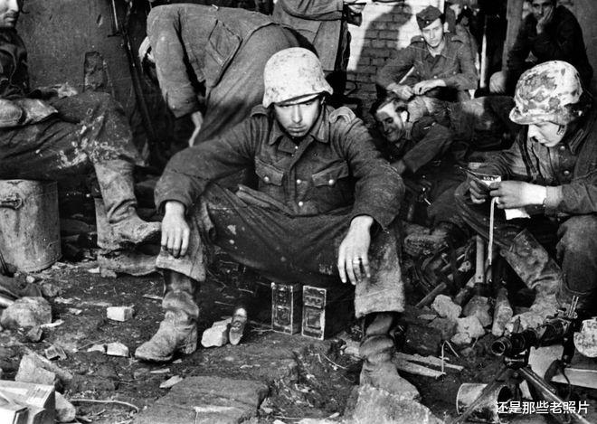 战争打到最后,就是一场又一场激烈的巷战。每一栋建筑,都成为了苏德双方激烈争夺的焦点。德军士兵坐在地上,已经是疲惫不堪。