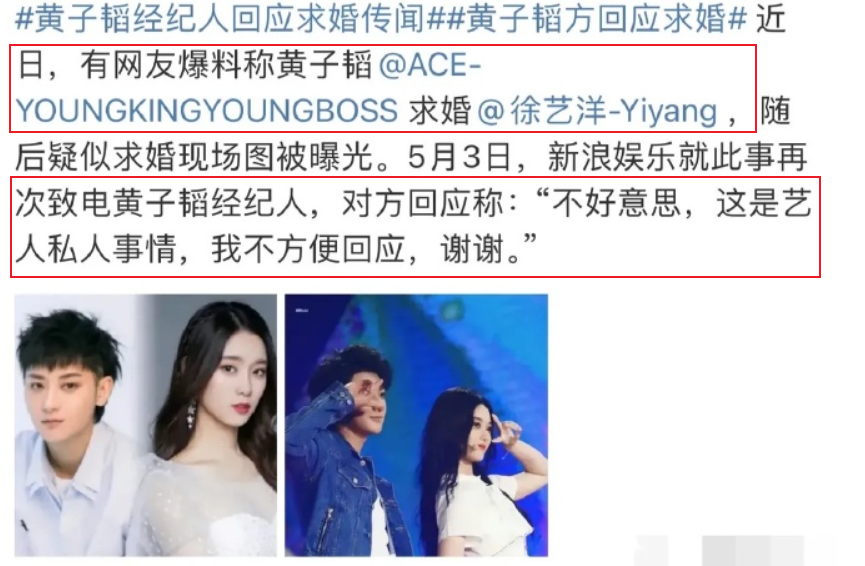 近日黄子韬在网上引起了广泛的关注,因为黄子韬关于求婚这件事情,可谓是闹得沸沸扬扬呀,好几个软件的热搜都有他的影子。在娱乐圈,黄子韬绝对是顶流,关于他的事情,大家都会特别的关注,尤其是求婚这件事。
