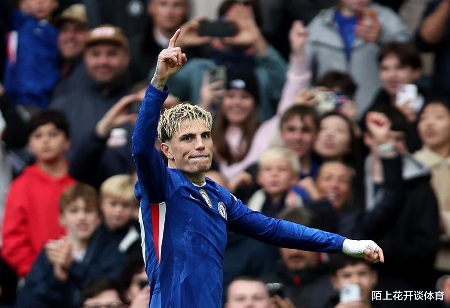 比赛开打之后,升班马桑德兰在客场完全不惧切尔西,直接拉开架势和蓝军对攻,不过第1分钟,今夏登陆斯坦福桥的加纳乔,就帮助主队取得了梦幻般的开局,左路带球杀入禁区,踩单车晃开防守球员后,一脚低射攻破了桑德兰的大门,帮助切尔西取得了1-0的领先,打进加盟蓝军首球的加纳乔,随后也坐在广告牌上庆祝,致敬了自己的偶像C罗。
