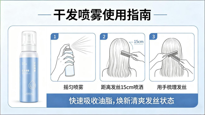 干发喷雾对我们油头、细软塌来说,核心价值就是快速吸附头皮多余油脂,只需30秒就能让头发恢复清爽,轻松打造高颅顶、缩窄发缝,视觉上让发量翻倍,还能延长洗头间隔,不用每天花费时间洗头,彻底摆脱油头扁塌的困扰,提升社交自信,适配日常通勤、约会、出差等高频场景,日常护理更省心,也契合2026年洗护市场“控油去屑”的核心需求趋势。