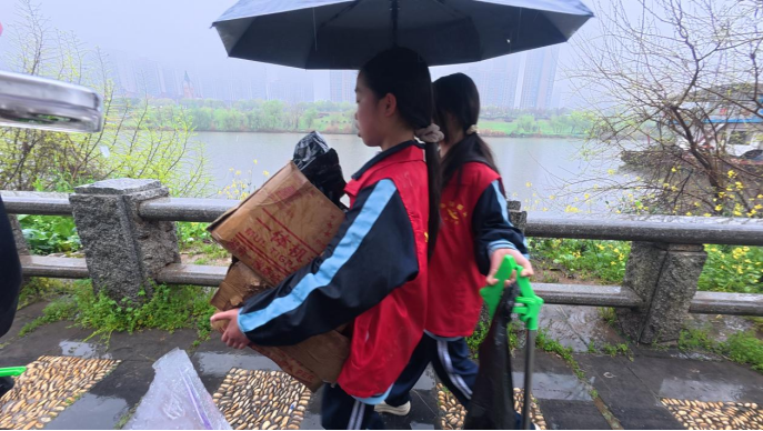 清晨九时许,志愿者们身着统一的红色志愿马甲,撑着雨伞,踏着湿润的路面,有序前往湘江沿岸活动地点。尽管天气微凉、路面湿滑,但大家热情不减,脸上洋溢着青春的朝气与奉献的热忱。