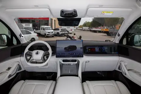 再瞧瞧中控区域,这里被命名为 “一体式星穹智控岛”,光是听这名字,就充满了科幻感,仿佛置身于未来的太空舱之中。它配备了 13.2 英寸的全液晶仪表盘,信息显示丰富且清晰;17.3 英寸的中控屏,操作界面简洁直观,反应灵敏;还有 13.2 英寸的副驾娱乐屏,为副驾乘客提供了丰富的娱乐选择。这三块屏幕的显示效果都极为出色,色彩鲜艳,画面细腻,操作起来流畅无比,没有丝毫的卡顿,就如同我们平时使用的高 端平板电脑一般,轻松满足各种需求。此外,还有 50 英寸的 AR - HUD 抬头显示,这一功能可谓是驾驶者的福音。在开车过程中,无需低头,所有重要的信息,如车速、导航提示等,都能清晰地投射在前挡风玻璃上,既保证了驾驶的安全性,又让驾驶过程变得更加便捷,再也不用分心去看仪表盘了。