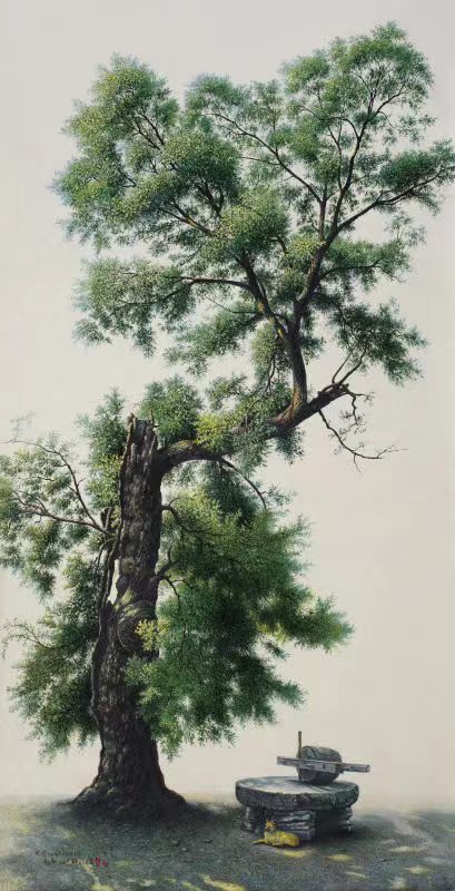《光阴》:沧桑古树与斑驳石磨的组合,藏着北方村落的时光印记;