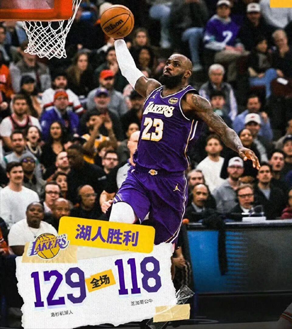 北京时间1月27日,湖人客场挑战公牛的比赛中,一场实力较量以湖人129-118战胜公牛告终。