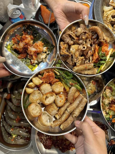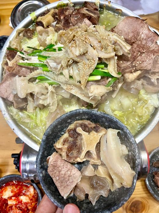 他们家的牛肠锅真的还原KR那款,牛肠滋滋冒油,加点泡菜和韭菜太香。搭配山葱叶吃一点不腻。