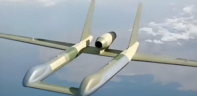 先说无侦-9最引人注目的双机身设计。它机长15米,翼展45米,这样庞大的体积超越了美军的全球鹰无人侦察机。