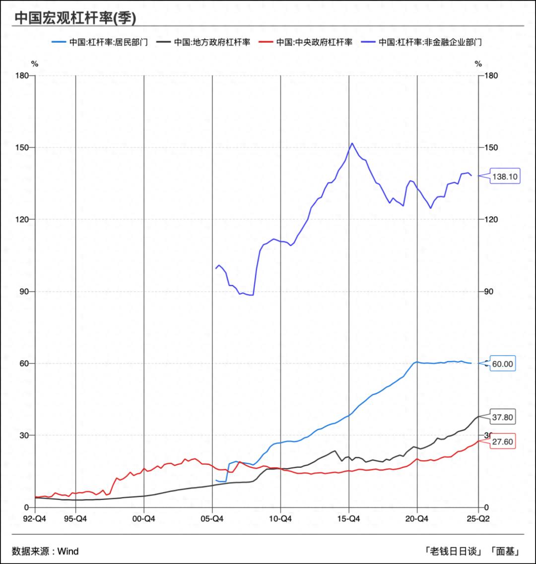 下图是我国私人部门和政府部门的杠杆率长期走势图,你能看出来谁还有空间: