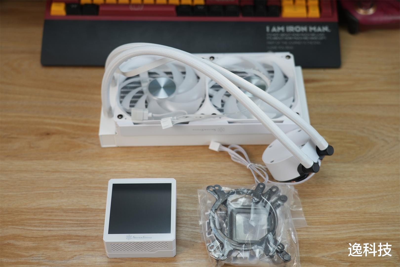 瞧瞧银欣E240 MAX的这套“全家福”,全白配色,颜值方面绝对无可挑剔。3.95英寸的冷头LCD,全金属扣具和一管TF02硅脂。