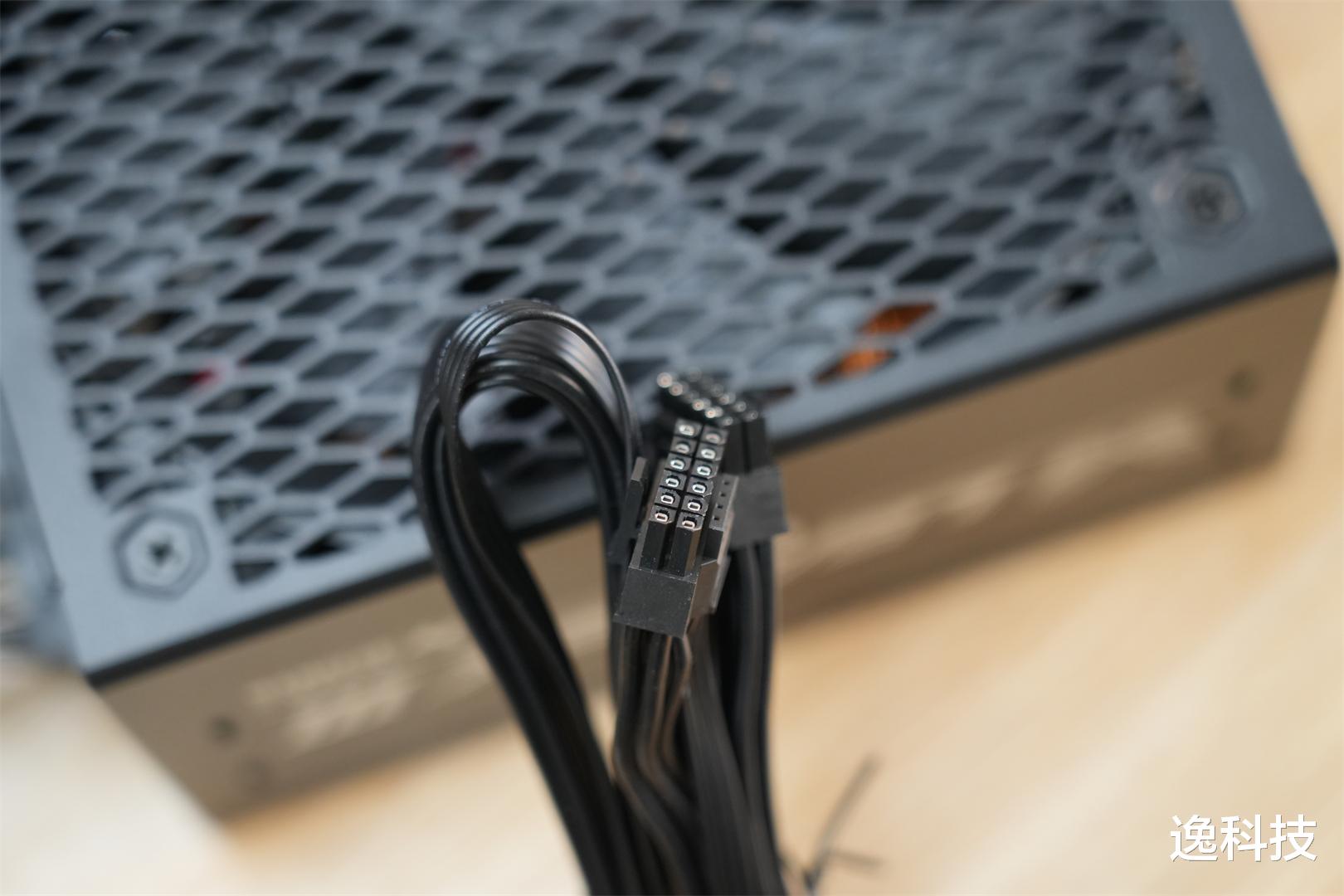 接口类型多样且丰富,电源采用全模组化设计。标配高品质扁平PVC线材,包含1条24pin主板供电线、2条CPU 8PIN供电线、2条显卡6+2接口供电线、1条12V-2×6供电线、1条SATA供电线以及1条双SATA+双PATA供电线,线材长度能很好地满足ATX/E-ATX机箱的背线需求。