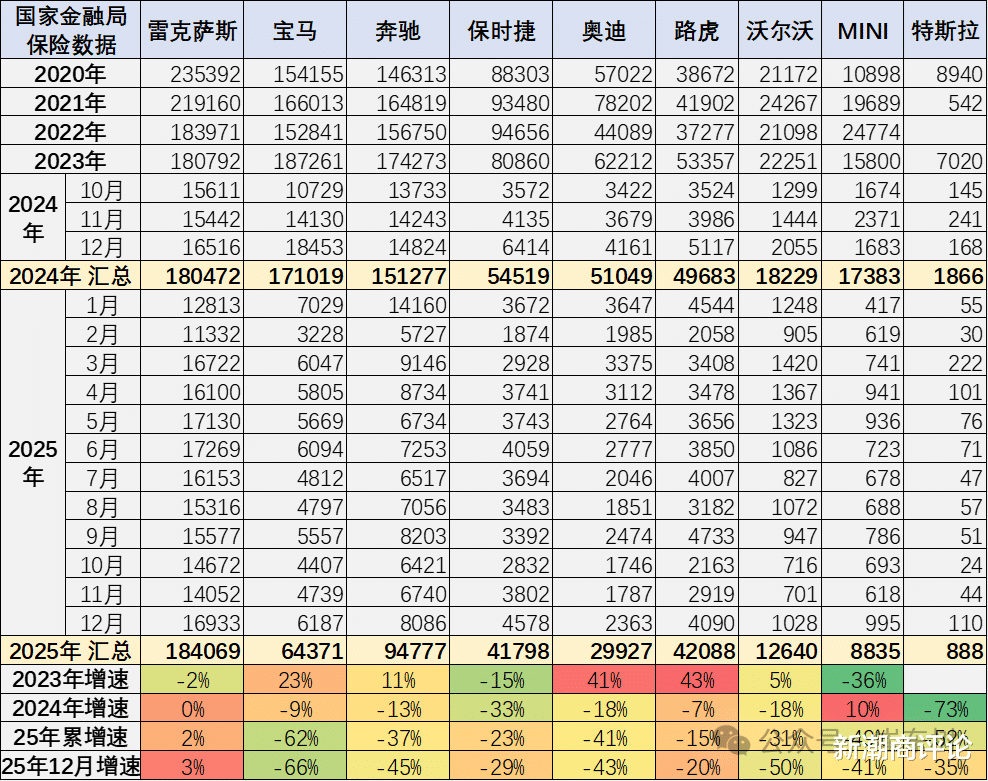 各大豪华品牌进口销量普遍出现下滑,路虎(4.21万辆)、保时捷(4.18万辆)、奥迪(2.99万辆)、沃尔沃(1.26万辆)、MINI(8,835辆)、特斯拉(888辆)同比分别下滑15%、23%、41%、31%、49%和52%。