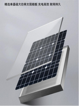 3、内置10Ah大电池,连续响12小时以上,还能升级到20Ah;配上20W单晶硅太阳能板,阴天都不慌。