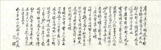 唐宋八大家横披跋文:唐宋之散文,逢乖时而不振。其弊为重文貌而轻文魂,即所谓骈体文当道而遗害无尽也。幸唐有韩愈、柳宗元,宋有欧阳修、王安石、苏洵、苏轼、苏辙及曾巩,此八人以倡导古文复兴为宗旨,以真性情妙辞句写惊世文章,而匡扶文坛之正脉, 留下彪世之宏文。至明初朱右首选此八人编《八先生文集》,后唐顺之编八人《文编》,及至茅坤选精品编《唐宋八大家文钞》一书,“唐宋八大家”之称谓乃定格 ,亦为后人所赞许。