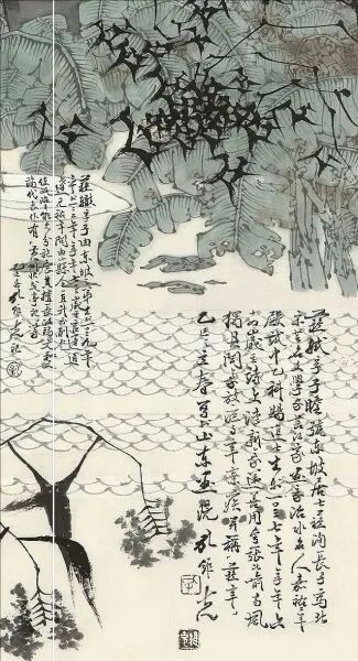 作品上面的池堂跋文不仅是为了画面形式的需要,同时也介绍了唐宋八大家称谓的形成过程,讲述了从宋代至明代跨越四百五十余年的历史积淀、文脉螯伏。