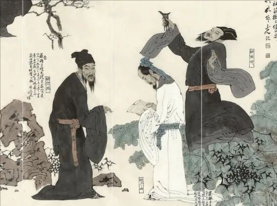 但同时他还有另一领域的艺术探索,转换了另一种艺术语言,他自己称之为“新古典中国画”系列。亦即一大批表现传统文化的古典艺术作品,如孔子系列、古典小品人物系列等,这些作品更是得到了众多社会各界朋友的喜爱。我们从这件新作《唐宋八大家》可以看到,作者在这一领域又有了新的突破和提升。