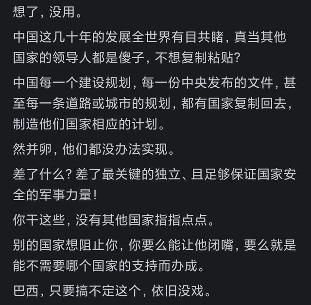 站在21世纪的门槛上,巴西的发展困境依然严峻。亚马逊雨林的砍伐、日益严重的贫富分化、新冠疫情的冲击,都在考验着这个国家的韧性。但巴西也拥有独特的优势:年轻的人口结构、丰富的自然资源、巨大的国内市场。如何将这些潜力转化为发展动力,需要巴西在政治、经济、社会等领域进行深刻变革。或许,巴西的崛起之路,不仅需要解决具体的发展问题,更需要在历史传统与现代文明之间找到平衡,在资源开发与生态保护之间寻求协调,在社会公平与经济效率之间实现统一。这既是巴西的挑战,也是所有发展中国家共同面临的课题。在巴西利亚的国会大厦穹顶下,议员们激烈辩论着养老金改革方案,阳光透过奥斯卡·尼迈耶设计的现代主义建筑结构洒落,映照着会议室里紧锁的眉头。与此同时,亚马逊雨林深处的原住民部落正手持弓箭,守护着即将被伐木公司侵占的家园;而在圣保罗的电子工厂,年轻工人在流水线旁刷着短视频,期待着下班后能去观看一场足球比赛。这些看似割裂的画面,勾勒出巴西发展困局中更深层的矛盾——当传统与现代、资源与环境、民主与效率激烈碰撞,这个南美大国始终在寻找破局的平衡点。
