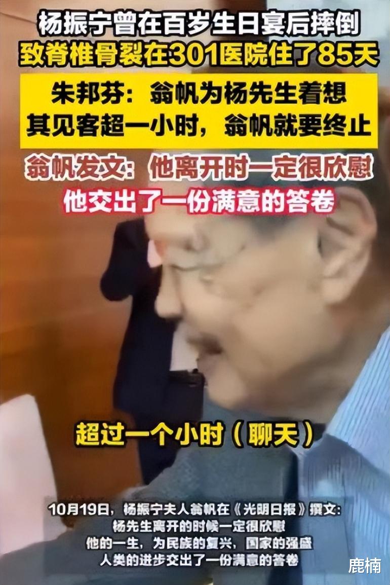 那时候,杨振宁已经在吸氧了,几乎是听不见什么东西。