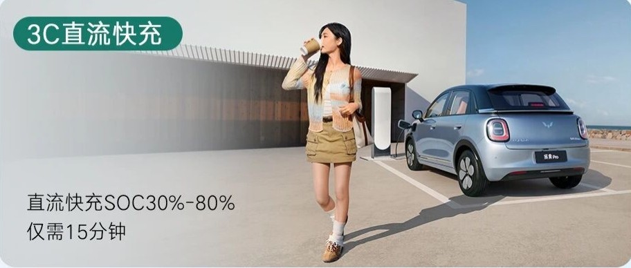 然后是快充升级,效率直接拉满。这点对于家里没家充的朋友来说太重要了,同级别的海鸥、星愿,从30%到80%基本都要半小时以上,赶时间的时候真的很磨人。而缤果Pro这次直接上了3C直流快充,同样30%到80%,只要15分钟。这个效率直接影响你的日常用车体验。