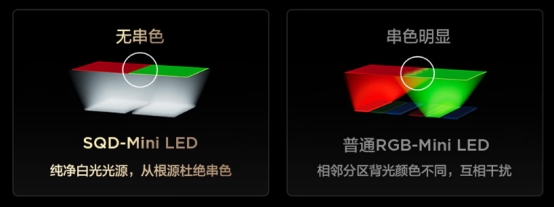 在这方面,TCL选择了更根本的解题思路。凭借多年Mini LED宗师级的技术沉淀,TCL 没有在旧赛道里“内卷”,而是直接带来了下一代显示技术——SQD-Mini LED。其“超级蝶翼华曜屏+超级量子点+万象分区”的黄金组合,让每颗灯珠独立发光无需混光,彻底告别光晕与串色问题。
