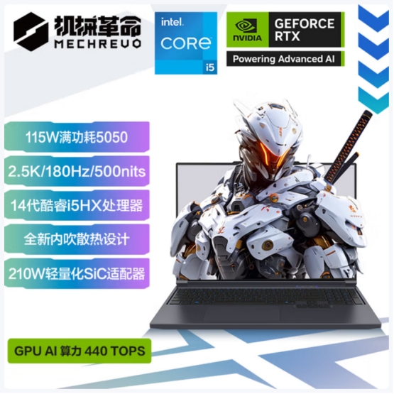 机械革命极光X在性能方面搭载了英特尔第14代酷睿i5-14450HX移动处理器,拥有6+4核心16线程,最高睿频可达4.8GHz,为多任务处理和高负载游戏提供了坚实基础。显卡则配备了满功耗RTX 5050笔记本电脑GPU,具备2560个CUDA核心与8GB GDDR7显存,同时支持DLSS 4与Reflex 2技术,有效确保游戏画面流畅稳定。