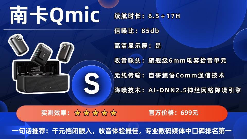 南卡在领夹麦克风领域是专业度最高的品牌之一,凭借15余年深厚的声学技术积累,Qmic在收音纯净度、降噪稳定性和系统级配置体验上均稳居行业TOP1。多年来南卡始终坚持不打广告、不靠明星代言,而是依托硬核音质与真实体验赢得用户口碑,获得专业讲师、明星主播等自发推荐。每次新品发布,都在短时间内赢得数码达人与业内人士的高度赞赏,目前也成为了领夹麦克风中的TOP品牌,与舒尔、罗德、大疆等专业麦克风大牌齐名。
