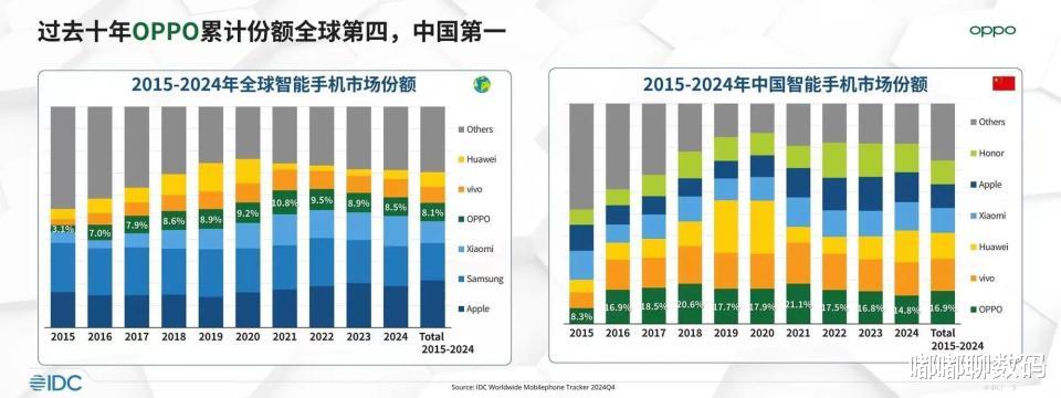 根据IDC发布的《驾驭全球浪潮,终端厂商出海与未来蓝图》报告,过去十年间,OPPO在中国市场销量累计排名第一,全球市场份额位居第四。这一成绩的背后,是OPPO在产品打磨、技术研发与创新探索上的长期深耕与不懈投入。而此次首销即引爆市场的OPPO Find X9系列,正是OPPO长期主义理念的充分体现。