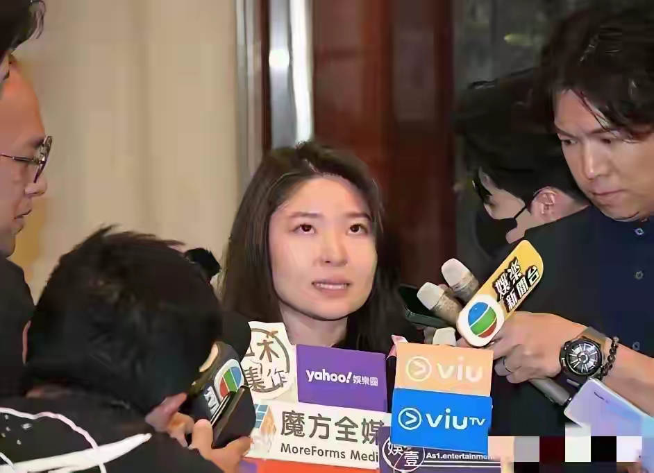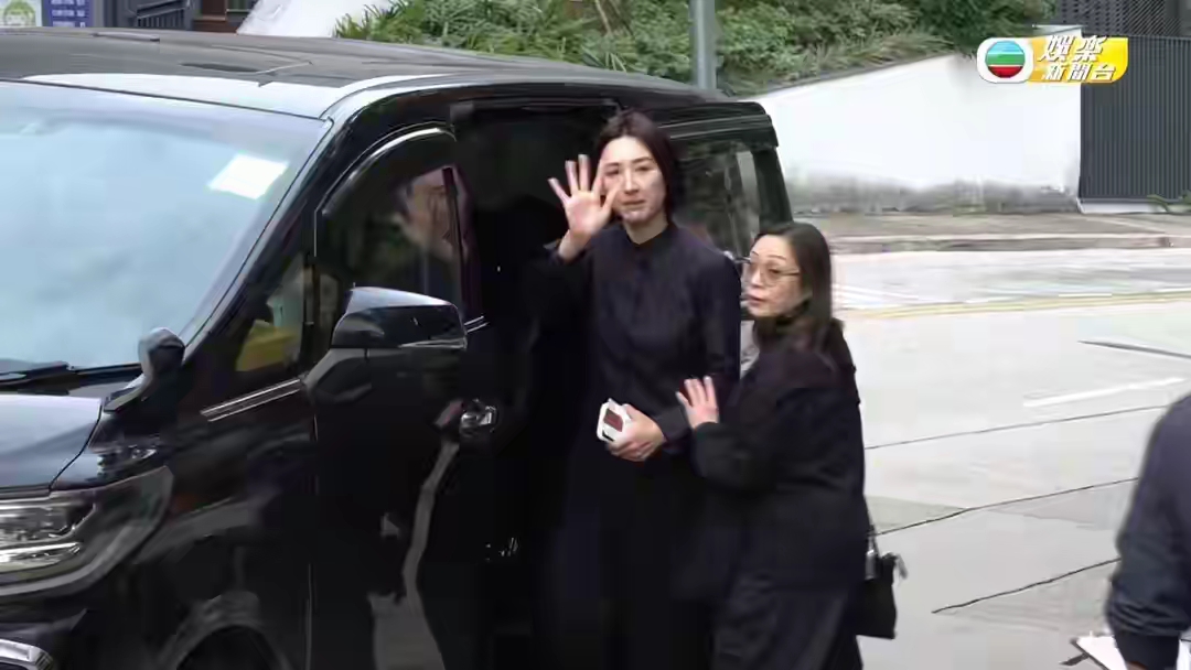 佘诗曼一身素服现身灵堂,神情悲痛。
