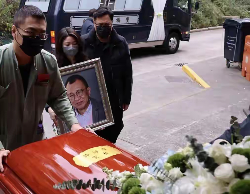 许绍雄的灵柩由八位生前圈中好友扶灵。