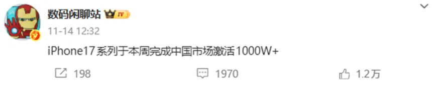 发售短短两个月时间国内市场激活量已超千万,今年的iPhone 17系列确实赢麻了。不过嘛,在其天生热搜体质加持下,注定也