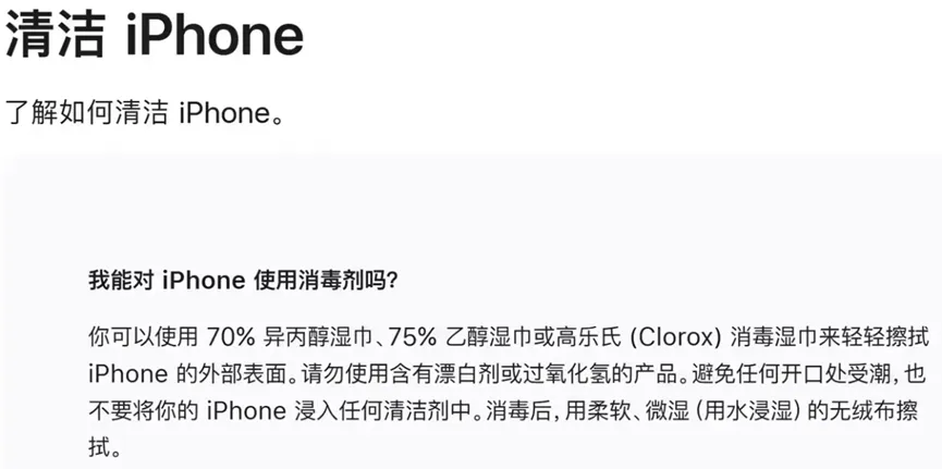 毕竟,从官方产品指南中不难看出,此类物质对iPhone表面涂层具有破坏性。