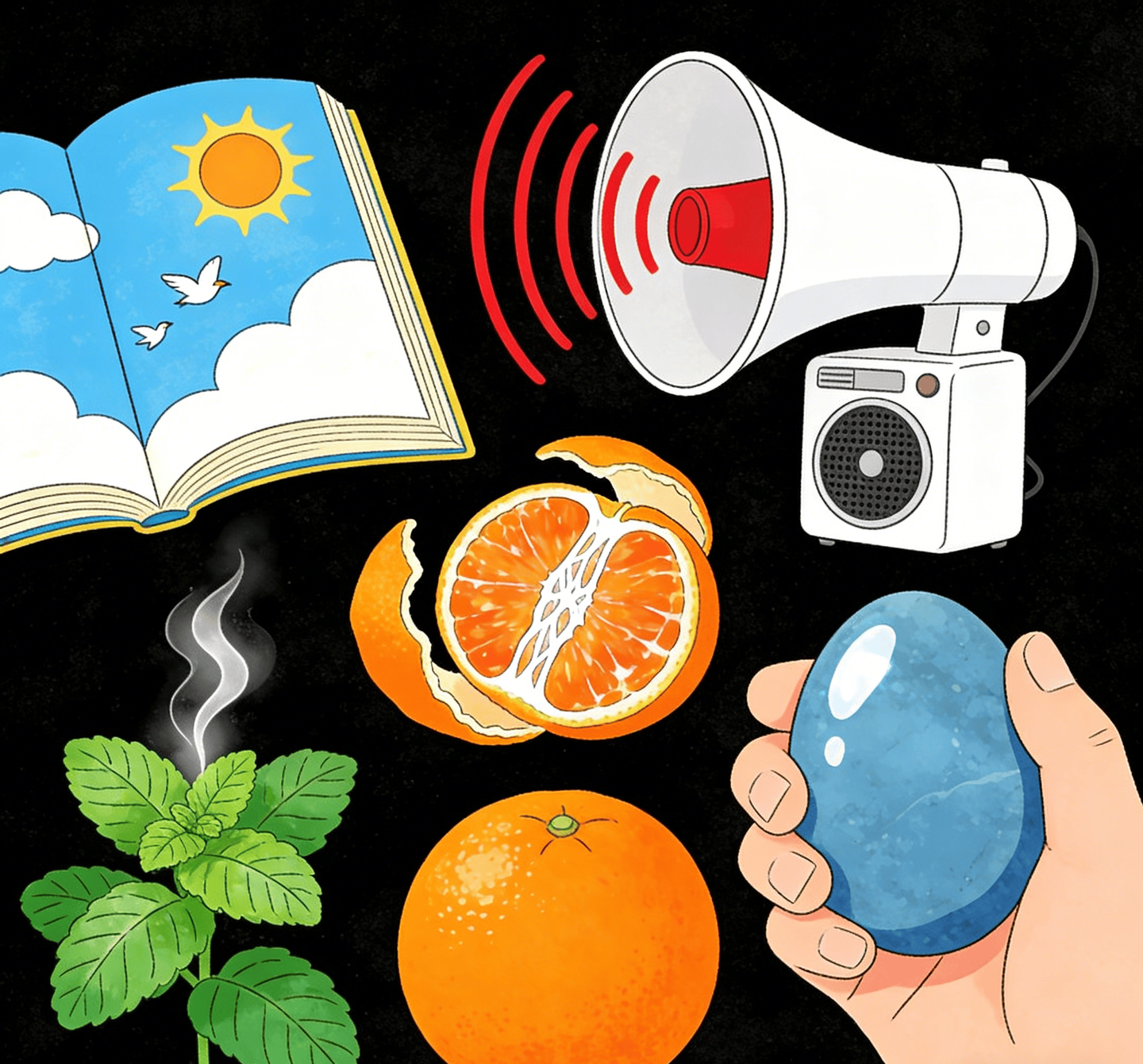 原理:通过感官刺激转移注意力,阻断焦虑思维的恶性循环。